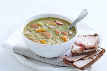 Erwtensoep es el nombre prácticamente impronunciable de la consistente sopa de guisantes típica de Holanda.
