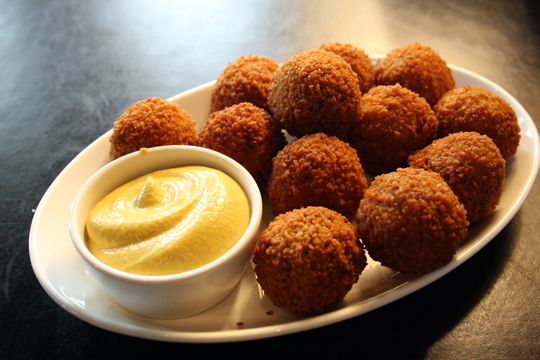 Son unas albóndigas muy fritas acompañadas de mostaza que suelen ser servidas como tapas en los bares.